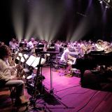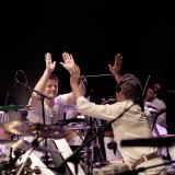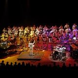 De feestende fusionband Snarky Puppy naast het onneembaar bastiljon van het Metropole Orkest.