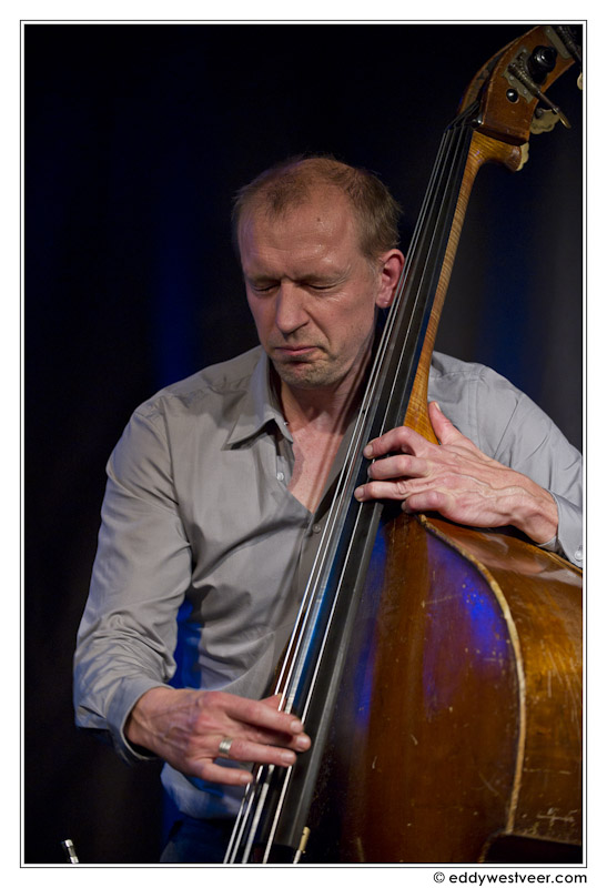 Contrabassist Cord Heineking. Simin Tander Kwartet.