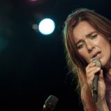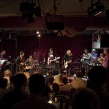Gitariste Corrie van Binsbergen en haar Grote Brokken op jubileumtour in Tilburg, met onder meer Beatrice van der Poel en Angelo Verploegen.