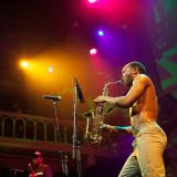 En dan heb je nog Seun Kuti (1982) zelf, die qua charisma en uiterlijk een reïncarnatie van zijn vader is. Zijn saxofoontechniek is niet indrukwekkend, maar de energie die zijn klank én verschijning teweegbrengt bij het publiek is om kippenvel van te krijgen. Hij staat er als een grote, volwassen leider die volledig opgaat in de muziek. Zijn katachtige bewegingen fascineren en de saxsolo’s, overtuigende vocalen en de smakelijke glimlach brengen dat beetje extra expressie die een zaal door het lint kan laten gaan. Dat de ophemelende toespraken over mooie vrouwen en Afrika niet helemaal overkomen, ach, het is vooral de boodschap van de authentieke afrobeat die overgebracht moet worden. En dat lukt tot zwetens toe.