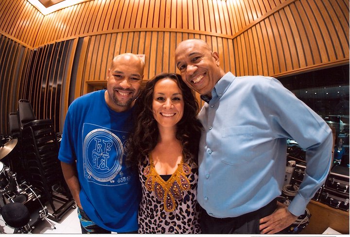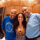 1. Frank McComb met Terri Lyne Carrington en Herbie Hancock. 2. McComb met Branford Marsalis op The Hague Jazz 2008. 3. McComb, Trijntje Oosterhuis en bassist/producer John Clayton tijdens de opnamen van Oosterhuis' album 'Sundays in New York' in 2010.