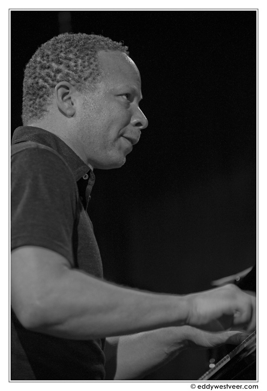 Taborn speelde in Middelburg diverse nieuwe stukken. Bij het openingsnummer zette hij een, met enkele korte noten gecreëerd, loopje in. De overname van het ritme door Cleaver was voor de pianist het sein om op ontdekkingstocht te gaan. Een met de linker– en rechterhand synchroon gespeelde waterval van tonen waaierde alle kanten op en herinnerde voornamelijk in de eindaccenten nog aan het loopje uit de introductie. Al meteen werd duidelijk dat bij Taborn traditionele referentiepunten niet vanzelfsprekend zijn. Akkoordsequenties en intervallen krijgen een heel eigen karakter. Hij verkent akkoordtonen en ontwikkelt die in heel andere richtingen dan je harmonisch verwacht. Veelvuldig klinken dwingende lijnen op de contrabas, gedubbeld op de piano met de linkerhand. De interactie tussen linker – en rechterhand is bij deze pianist sowieso spannend. Zo draait hij regelmatig de rollen om en improviseert links terwijl rechts een loopje repeteert. Of, over een razendsnel patroon klinkt een syncopisch gespeelde set akkoorden, voorzien van steeds schuivende accenten en dynamiek, als creëerde hij een drumsolo.