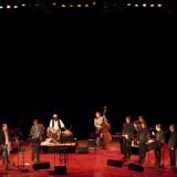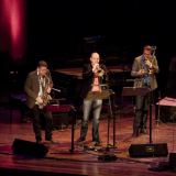 Na de pauze bezetten alle musici van de eerste set het podium, plus percussionist Serigne Gueye en flamencogitarist El Periquin. Geopend werd met de Van Kemenadeklassieker ‘Kosmo’, hier bewerkt voor grote bezetting. Indrukwekkend waren de collectieve improvisaties, die rijkelijk vloeiend uitmondden in het zo aansprekende thema van het stuk. De inbreng van Cappella Pratensis beperkte zich slechts tot het eindeloos herhalen van de woorden ‘Stella Maris’. Nadien waagden drie van de vier zangers plus Paul van Kemenade zich op glad ijs met ‘The Joy’, een gearrangeerd uittreksel uit de ‘Missa Pro fidelibus’ van de vijftiende-eeuwer Pierre de la Rue. Wie het project ‘Officium’ kent van het Hilliard Ensemble met sopraansaxofonist Jan Garbarek, kan zich enige voorstelling maken van de uitwerking van ‘The Joy’: de ijle stemklanken van de drie zangers, vermengd met een omfloerste en met nat mondstuk aangeblazen improvisatie op de altsax. Het verschil tussen Hilliard/Garbarek en Pratensis/Van Kemenade zat vooral in de aanpak: de eersten zochten hemelse sferen op, de tweeden plantten hun voeten in middeleeuwse aarde.