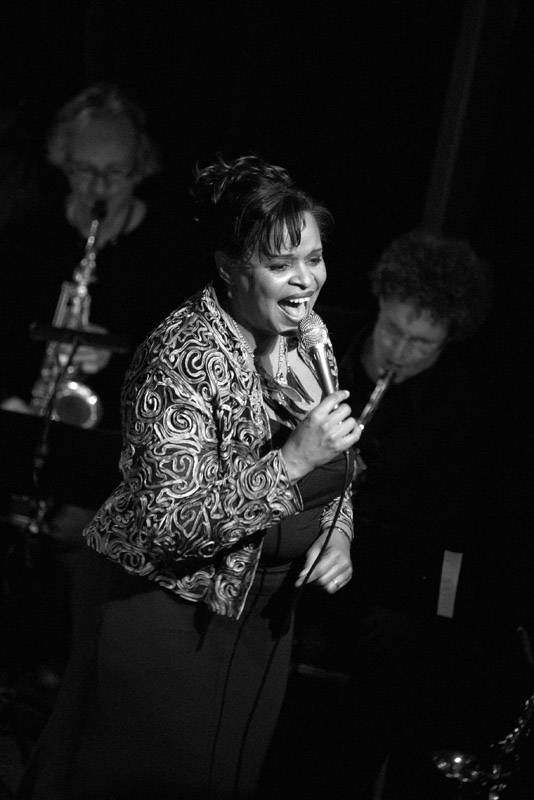 Na Eric Vaarzon Morel kreeg Deborah Carter de ondankbare taak de twee voorgaande hoogtepunten van de avond te overtreffen. De zangeres kreeg dat niet voor elkaar. Tegen wat eerder was, viel gewoonweg niet te concurreren. De in Nederland wonende Amerikaanse beweegt zich in de periferie van Diane Schuur, kiest voor stukken uit bijvoorbeeld het Count Basie Songbook, brengt gloedvolle vertolkingen van werk als ‘You’d Be So Easy To Love’ en ‘Comes Love Nothing Can Be Done’, maar de klik die nodig is om het publiek uit zijn bol te laten gaan, ontbrak deze avond. Ook het BJO liet zich van een andere kant zien: waren het orkest en Eric Vaarzon Morel een onlosmakelijke eenheid, achter Deborah Carter vulde het te vaak à la doorsnee big bands de achtergrond in.