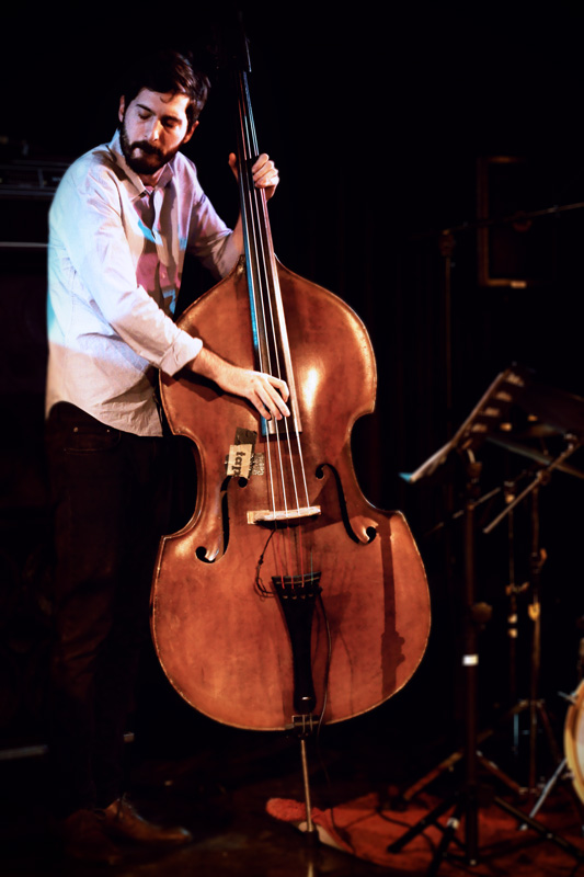 En contrabassist Ruben Samama? Hij zorgde tegen het einde van het concert voor het mooiste moment van de avond. In een eigen stuk, opgedragen aan zijn Koreaanse vrouw, zette hij een fascinerende, lange bassolo neer met gebruik van elektronica. Over gesampelde basklanken legde hij zijn stemgeluid, dat uitmondde in angstaanjagend gegier en via een intensief geplukte baspartij in een kolkende notenzee, waarna hij zijn stem liet overgaan in doodgewoon menselijk gefluit.