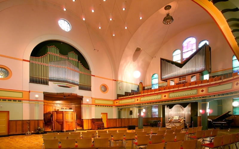 De prachtige zaal van het Orgelpark met imposante orgels.