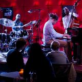 Het trio van pianist Gerald Clayton aan het werk in een goed gevulde North Sea Jazz Club in Amsterdam.