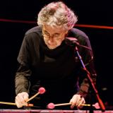 Vibrafonist Mike Mainieri op het podium met pianist Bugge Wesseltoft en saxofonist Bendik Hofseth.