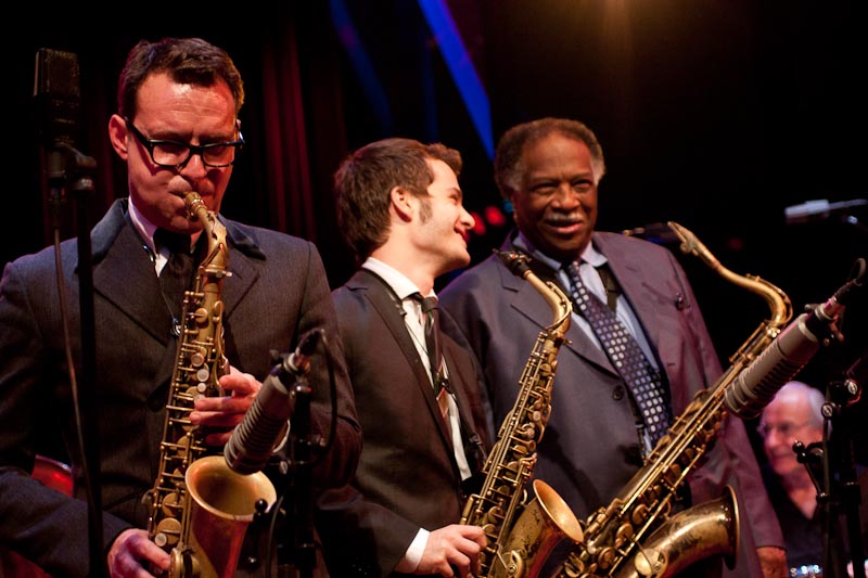 Veel muzikale gasten op het 70e verjaardagsfeest van pianist Rein de Graaff in het Bimhuis, zoals Benjamin Herman, Ben van Gelder, Houston Person en zangeres Silvia Droste.