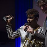 Bart Wirtz, Dee Dee Bridgewater en Christian Scott ontvangen hun Edisons in het Muziekgebouw Eindhoven.