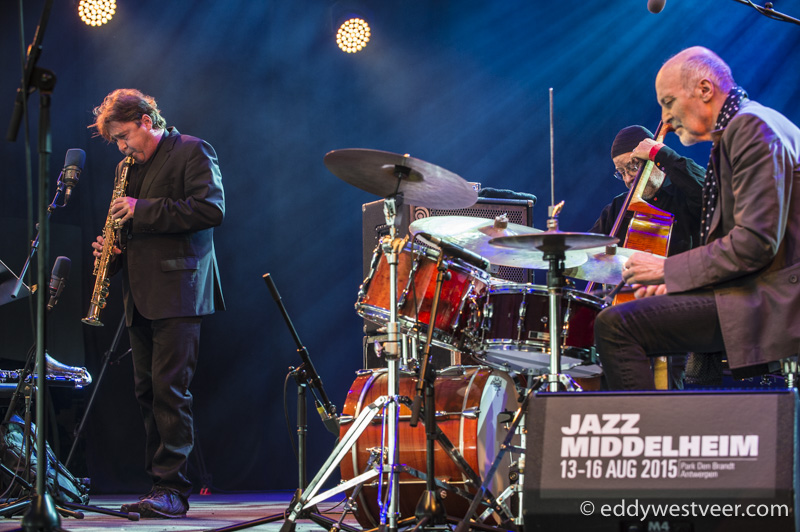 Bijzonder was het slotconcert van Jazz Middelheim dat verzorgd werd door het trio van Bill Frisell. Als een regisseur van het niveau Tarantino, raasde de gitarist als een cowboy door de tijdsbeelden van zijn jeugd. Fragmenten uit onder meer ‘Midnight Cowboy’, ‘You Really Got Me’, het thema van de westernserie ‘Bonanza’ en ‘Days of wine and roses’ vloeiden met een stevig surf-, country-, rock- of bluesgeluid uit Frisell’s gitaar. Begeleid door een rafelig drummende Kenny Wollesen en contrabassist Tony Scherr die heerlijke tegenritmen speelde of met Frisell in dialoog ging. Verwijzend naar zijn recent verschenen album ‘Guitar in The Space Age’ dat zijn beslag kreeg in een verwoestende gitaarimprovisatie in de geest van Jimi Hendrix. Een muzikale trip die nog lang aan Jazz Middelheim 2015 zal doen terugdenken.