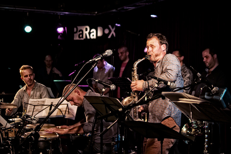 Het XL-orkest van de Belgische saxofonist Bruno Vansina op het podium van Paradox.