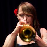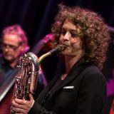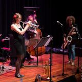 Ellister van der Molen op flügelhorn. Baritonsaxofoniste Tini Thomsen met contrabassist Jos Machtel.