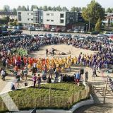 200 tot 800 kinderen met zelfgemaakte instrumenten maken muziek in het project Fort van de Verbeelding.