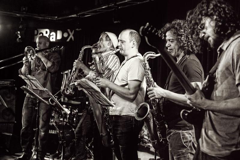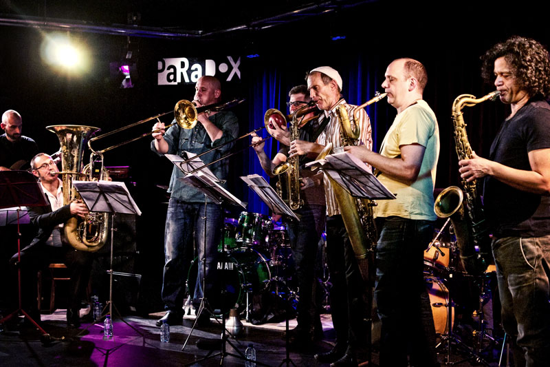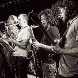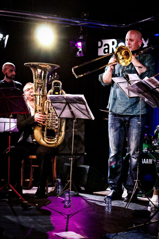 Het koper van onder andere Bart Maris, Pascal Rousseau, Seb Bishop en Edoardo Marraffa voerde de boventoon, op de huid gezeten door Stadhouders die zijn schelle gitaargeluid grillig en creatief mengde in het groepsgeluid dat nog eens stevig werd aangezet door de tweede drummer Onno Govaert. Het spectrum aan improvisatielandschappen, vaak aanschurkend tegen helse heavy metal, werd voortdurend doorkruist door opzienbarende solo’s, verwarrende dialogen of vreemde kwinkslagen zoals de ritmisch weerklinkende ventielen van de blaasinstrumenten.