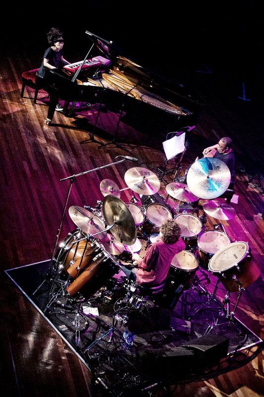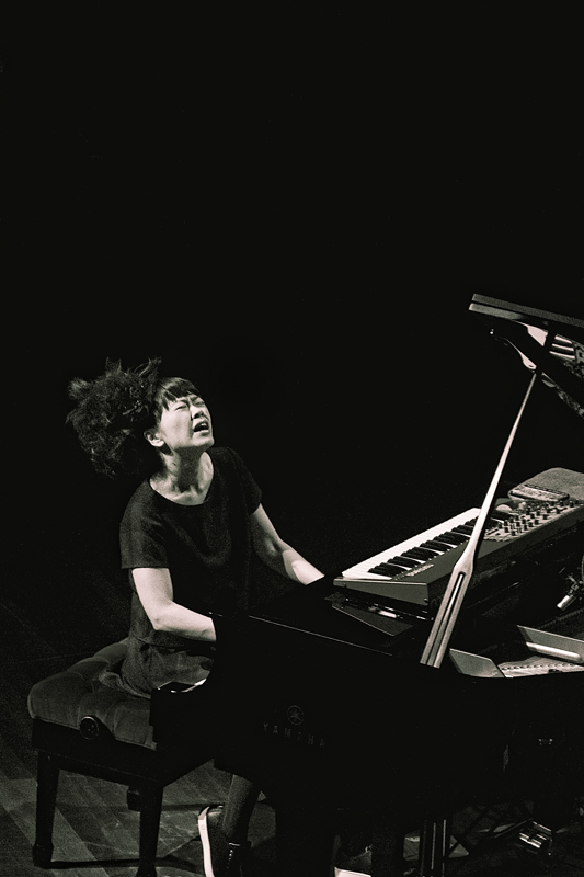 Het levendige pianospel van Hiromi (36) dat zich als een tsunami voltrekt, wordt gedomineerd door een enorme spreiding en een omvangrijke aanslag. Donderende ritmische partijen, vingervlugge lyrische lijnen, een paar maten blues; één met haar instrument zuigt de Japanse zich blijgeestig in de muziek, wulps bewegend achter de vleugel en speels communicerend met het publiek, strak aangestuurd door basgitarist Anthony Jackson en drummer Simon Philips.