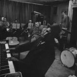 Zoot Sims. Thelonious Monk en Hall Overton arrangeren. Repetitie Monk's Tentet met Overton als aandachtig luisteraar. Foto's © screenshots The Jazz Loft.
