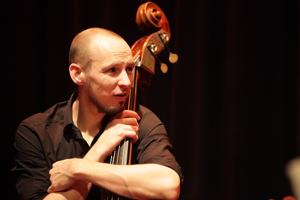 Bassist Sven Happel (Vinnie Vibes). Rogier Telderman Trio met bassist Guus Bakker en drummer Tuur Moens.