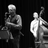 Saxofonist Dick de Graaf met de Italiaanse gitarist Federico Castelli en contrabassist Stefan Lievestro.