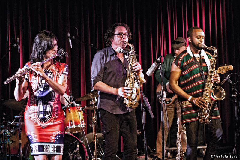 In rustiger vaarwater kwamen The Ethiopians wat beter uit de verf. Fraai waren de unisono geblazen thema’s van dwarsfluitiste Laurence Bilger en Capel op sopraansax, over de dromerige percussie van Gunther en Dembele’s balafon, een Afrikaans houten slaginstrument verwant aan de marimba, en de vervlogen gitaarakkoorden van Martens. Tenorsaxofonist Yimam Teddy trakteerde het publiek op een paar aardige intro’s gespeeld op de masenko, een eensnarig muziekinstrument dat zijn oorsprong heeft in Ethiopië. Maar eenmaal weer op stoom, verdwenen de nuances naar de achtergrond en werd met een huppende en klappende Capel en Bilger op de voorgrond vooral het feestelijke aspect van de funk en Afro-beat benadrukt, zonder veel aandacht te besteden aan detail en diepgang.