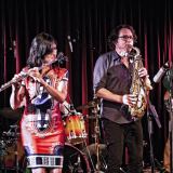 Saxofonist Edward Capel (m) met onder andere Moussa Dembele, fluitiste Laurence Bilger en tenorsaxofonist Yimam Teddy.