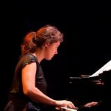 Pianiste Kaja Draksler, gitarist Raphael Vanoli en gelegenheidsensemble Badenhorst, Roelofs, Austbø, Brice, Eldh, Taubenfeld op het podium van Bimhuis.