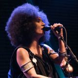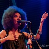 Oum heeft een sterke aanwezigheid en mengt in haar zang moeiteloos elementen uit de soul, pop, bossa nova en gnawa. Haar teksten snijden actuele onderwerpen aan als de bedreigde natuur, het lot van de migranten en de emancipatie van de Marokkaanse vrouw. Ze zingt haar teksten in het Arabische ‘darija’ dialect. Blootsvoets danst ze over het podium en vuurt ze haar muzikanten aan. De zaal reageert navenant en naarmate het concert vordert, zit er niemand meer op zijn stoel. Het is duidelijk dat het entertainment karakter hoog ligt, maar bij de kwaliteit van de inhoud en de uitvoering mogen best een paar vragen gesteld worden. Haar stem is prettig maar raakt het hart niet echt en de kwaliteit van de begeleidende musici is nogal wisselend. Zo is het spel van de saxofonist ronduit beroerd, zijn de improvisaties van de trompettist aan de korte kant en is bassist Nueva hooguit een aardige begeleider. Solistische hoogtepunten komen van de ritmisch sterke Rami op zijn ud. Deze kanttekeningen mogen de pret niet drukken, want voor haar publiek is Oum een ware heldin. Het concert eindigt na maar liefst zeven kwartier met een uitbundig dansende menigte en een applaus waaraan geen einde lijkt te komen.