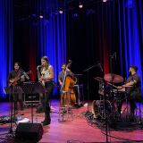 Slagwerker Kush Abadey en contrabassist Pablo Menares met Melissa Aldana. Het trio van Joel Ross.