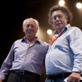 Fred Van Hove (links) ontvangt in 2010 de SABAM Jazz Award tijdens festival Gent Jazz. Foto © Jos L. Knaepen.
