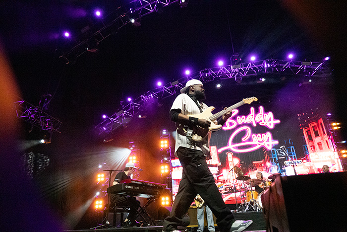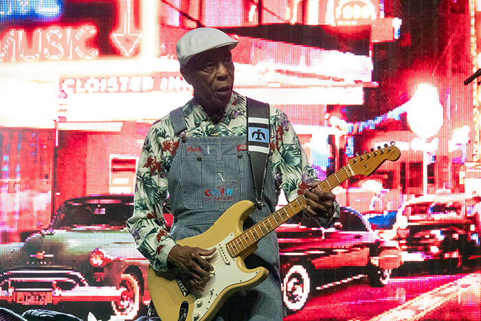 Gekscherend wordt wel eens gezegd dat North Sea Jazz voor een deel een omgevallen bejaardenhuis is. Bluesgitarist Buddy Guy (1936) mag dan inmiddels een breekbare indruk maken, zijn presence is er niet minder om. Zijn stem en gitaarlicks zijn ongeëvenaard en met zijn fantastische band zet hij in de Maas een bijzonder energieke set neer.