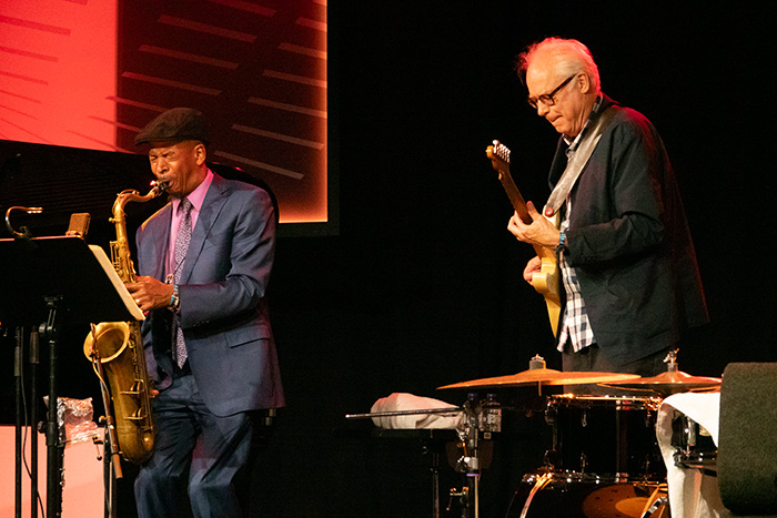 Bill Frisell gastmuzikant bij Andrew Cyrille (l). Aansluitend speelde Frisell met zijn kwartet Four met daarin klarinettist Greg Tardy.
