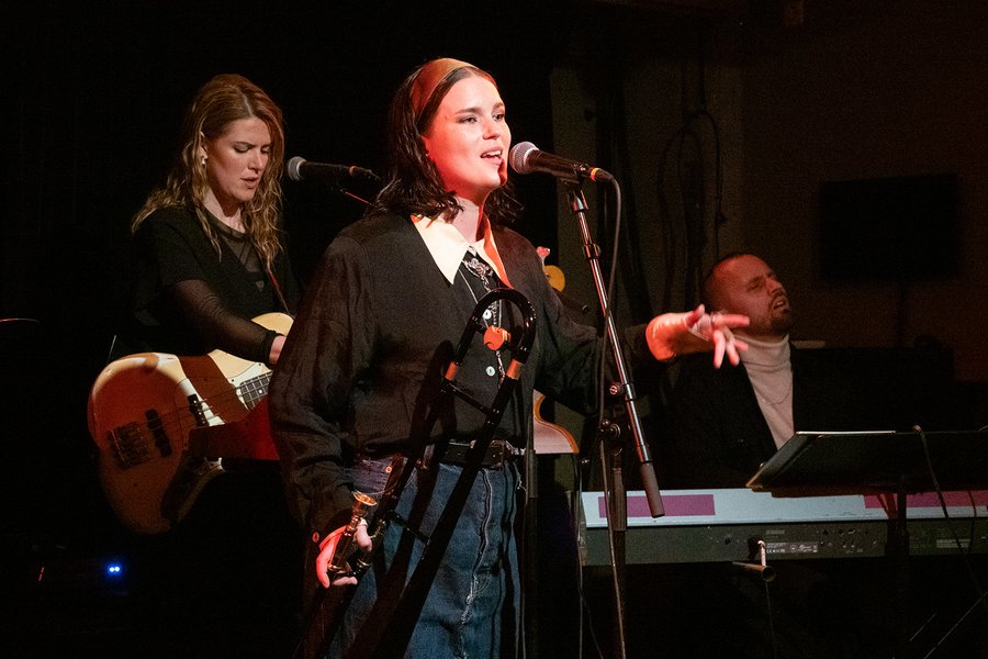 Ebba Åsman en haar bandleden Jessica Tjörnmark, Sebastian Ågren en Manne Skavenstedt.