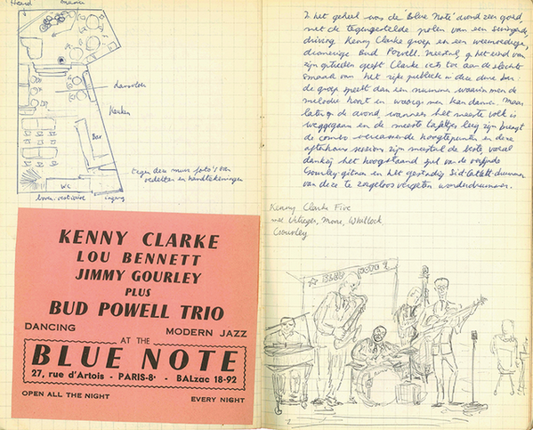 Af en toe maakte hij kleine tekeningen in zijn notitieboekjes. Een aantal voorbeelden werd bijgevoegd. De hoes, een portret van Yusef Lateef, is ook van hem.![]()