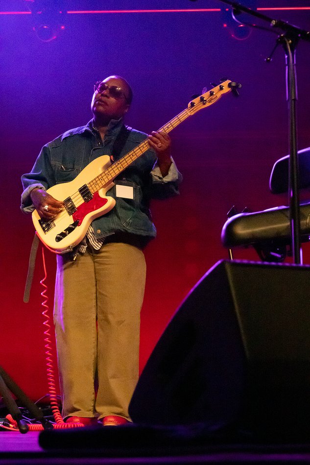 Het hoogtepunt van de avond was zonder twijfel Meshell Ndegeocello. De Amerikaanse zangeres, bassist, songwriter en multi-instrumentalist is één van de meest eigenzinnige stemmen in de hedendaagse muziek. Ze won drie Grammy Awards, waaronder tweemaal de pas ingestelde prijs voor Best Alternative Jazz Album, voor ‘The Omnichord Real Book’ (2023) en ‘No More Water: The Gospel of James Baldwin’ (2024). Ze speelde met de Rolling Stones, Madonna, Herbie Hancock, Robert Glasper en talloze anderen.