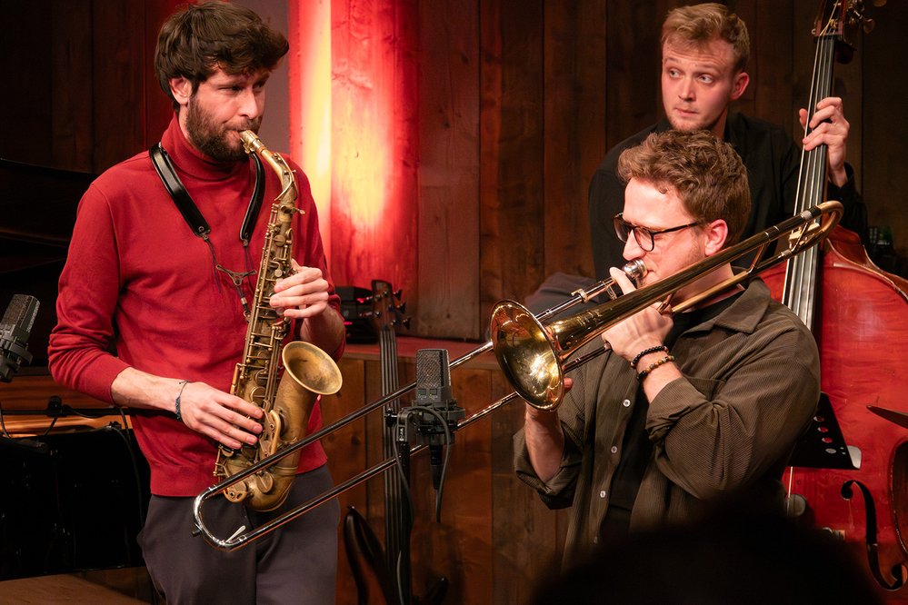 Want Friesacher is een van de vijf muzikanten van het Loek van den Berg Quintet, dat Rotterdam al een tijdje als thuisbasis deelt. Het kwintet heeft inmiddels twee albums op zijn naam staan en won dit jaar de competitie Keep an Eye The Records, wat betekent dat ze in 2027 een derde album mogen uitbrengen. Dat perspectief was gisteravond voelbaar: een band die weet waar ze naartoe gaat.