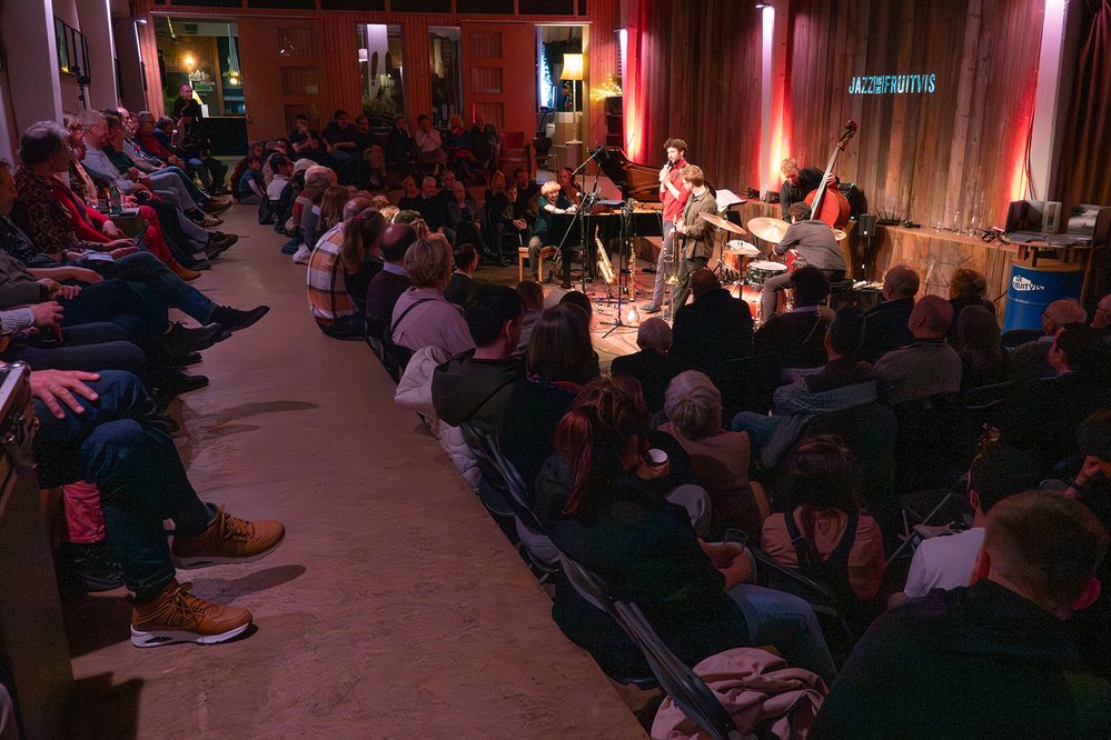 De Fruitvis is bezig aan een stille opmars. Het industriële pand in de Rotterdamse Fruithaven, waar al jaren elke derde vrijdag van de maand jazz van hoog niveau te horen is, trekt een steeds vaster en groter publiek. Uitverkochte avonden zijn geen uitzondering meer, de naam circuleert steeds vaker in gesprekken over de beste jazzpodia van de stad. En alsof dat nog niet genoeg is: vrijdagavond stond er voor het eerst een vleugel op het podium, in bruikleen gekregen van TOON Rotterdam. Een welkome aanvulling, en pianist Aseo Friesacher mocht als eerste zijn vingers erover laten gaan.