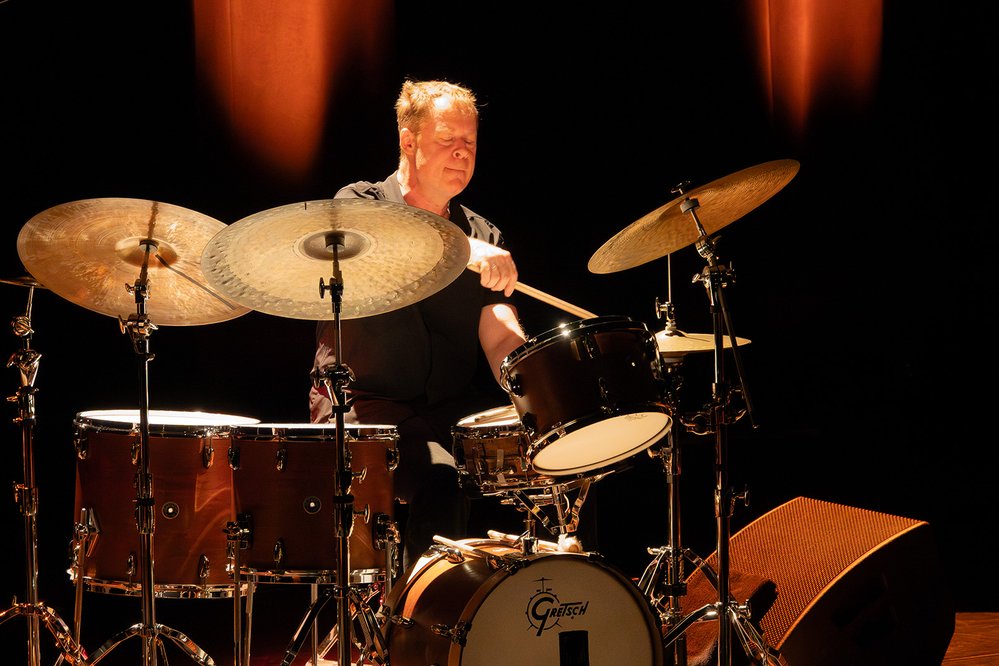 Het concert opende met ‘Slow Boat’, een compositie van Goldings, en meteen was de sfeer gezet: ontspannen swing, geen haast, drie mannen die weten dat ze elkaar niet hoeven te bewijzen. Goldings’ orgel zat warm in de mix, Bernstein’s gitaar er soepel overheen, Stewart een tikje ingehouden maar precies. ‘Libra’ volgde, van Gary Bartz, en het Jobim-nummer ‘Louisa’ in driekwartsmaat. Tot dat punt was de avond wat ingetogen, afgepast zelfs, alsof het trio op gang aan het komen was.