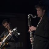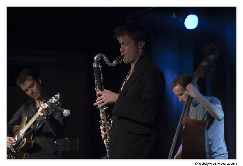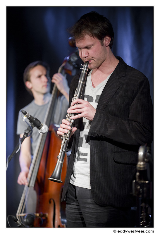 Roelofs zong met (bas)klarinet vol en toch fluweelzacht thema’s en gebruikte gedurende het eerste deel in de improvisaties lange, lyrische noten. Soms zo zacht dat alleen de luchtverplaatsing hoorbaar was. Nadat Van Ruller in ‘Easygoing’ flink uitpakte met vliegensvlugge lijnen zag Roelofs zijn kans schoon in ‘Just in time’. Op basklarinet, het instrument dat hij vaak ter hand nam, speelde hij een indrukwekkende solo die het hele register van hoog naar laag besloeg, snel en energiek en met verrassende paden naar de eindtonen.
