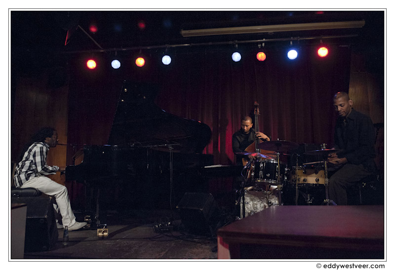 En zijn eigen stem, die liet Valle daar in volle glorie horen. Geconcentreerd zocht hij mooie klanken tijdens de ingetogen start van het optreden en ging vervolgens over naar ‘Dislberg morning light’. Dat stuk had een opbouw, die een aantal van zijn uitvoeringen kenmerkt: een eenvoudige maar sterke basis, die het hele nummer draagt en waarbij het trio vervolgens uitvoerig vele harmonische en melodische variaties verkent en ongekende wisselingen in dynamiek ten toon spreidt. Daarbij ontlokte Owen Hart Jr. fluisterzachte roffeltjes aan zijn kleine drumkit maar evenzogoed een donderend geweld. In ‘Dislberg morning light’ vormde een eenvoudig, groovend linkerhandpatroon op de piano die basis en in ‘Playground’ een setje van twee sprekende akkoorden.