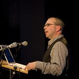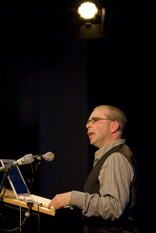 Hoogleraar jazz en improvisatiemuziek Walter van de Leur tijdens zijn lezing in Tilburg. Foto © Stef Mennens.