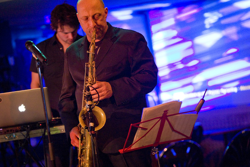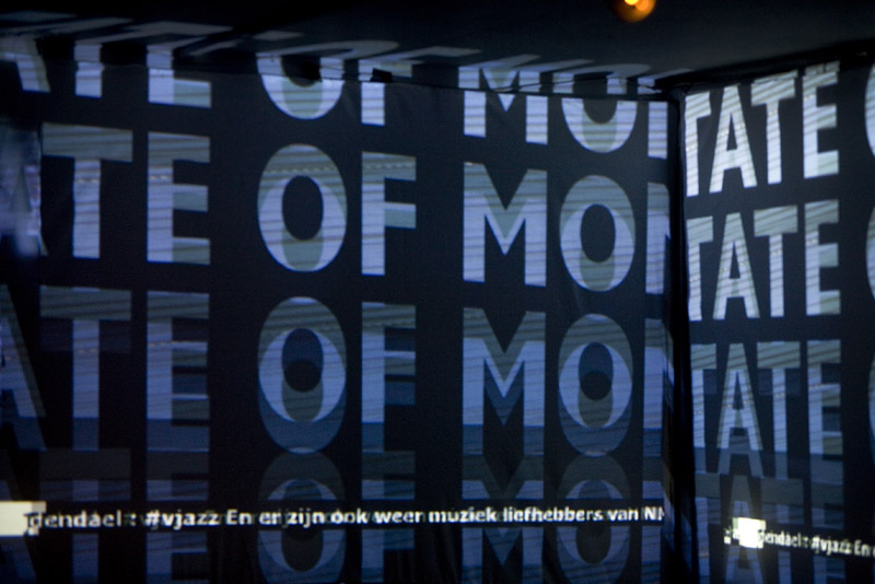 In de zaal waren naast thematische kunstwerken op verschillende schermen visuals te zien en een op de bar opgestelde labtop konden de bezoekers berichten twitteren die rechtstreeks op de schermen werden weergegeven. Vjazz heet het totaalconcept, waaruit je zou mogen opmaken, jongeren op een aangename manier kennis te laten maken met jazz de achterliggende gedachte is.
