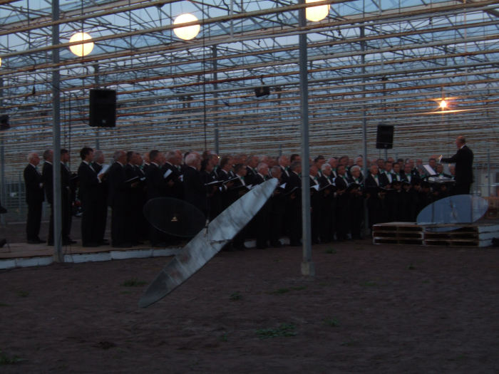 De ‘Ballade van de Rijzende Zon’ is hiermee een goed bedoeld probeersel geworden, maar meer ook niet. Niet dat er iets aan te merken viel op de uitvoerders: de stem van Yuka Kawabe intrigeerde van begin tot eind, de voor dit project aangepaste composities van Paul van Kemenade werden door zijn kwintet mooi neergelegd, het jeugdig enthousiasme van Ries Doms en Wout Kemkens werkte aanstekelijk, de Afrikaanse percussionist Serigne Gueye voelde zich als een vis in het water in deze Westlandse tuinbouwkas, het Westlands Mannenkoor vertederde het goed opgekomen publiek, de elektronicamusici Jeroen Strijbos en Rob van Wijk vulden de akoestische muziek van het jazzkwintet goed op en de lichtanimaties van Moniek Smeets en Bram Wiersma zorgden voor aardige visuele effecten, ook al waren ze wat magertjes.
