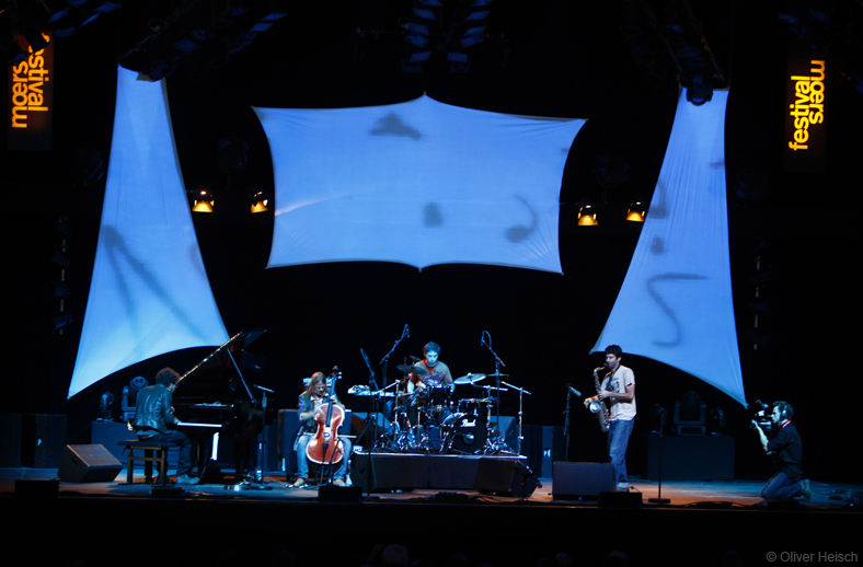 Gedreven bop van het Tia Fuller Quartet. The Ambush Party op het podium van Festival Moers. Bassist Achim Tang speelde zijn project 'Torn'.