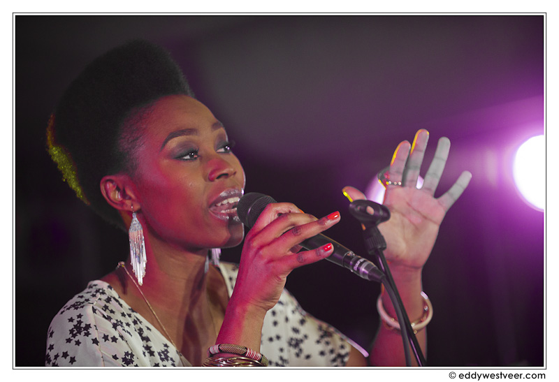 Zoals bij de opener in de A-Train, Aloe Blacc and the Grand Scheme. Blacc stak niet onder stoelen of banken waar hij zijn inspiratie haalt. Met naam en toenaam refereerde hij aan James Brown, Stevie Wonder en Marvin Gaye. De strakke band kreeg al snel de publieksparticipatie waar ze om vroeg. Ook veel soul heeft zangeres Ntjam Rosie. Haar tweede album ‘Elle’ heeft een meer jazzy karakter dan haar debuutplaat. In een volgepakte zaal bracht ze op ontspannen, maar overtuigende wijze haar set met smooth jazz stukken. Haar warme stem riep soms associaties op met Zap Mama’s Marie Daulne en Erykah Badu. Oprecht blij voor zoveel publiek te kunnen spelen meldde ze “the sun isn’t shining outside, but we will make it shine for you here”.