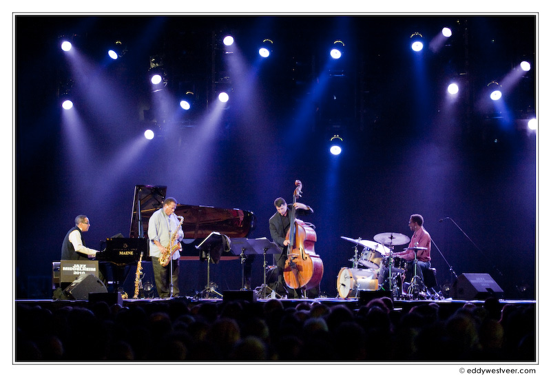 En dan was er Wayne Shorter met zijn kwartet bestaande uit Danilo Perez (piano), Brian Blade (drums) en John Pattitucci (bas). Op papier een ‘dreamteam’, live eveneens. Shorter maakte het zichzelf en het publiek niet makkelijk. Het concert was een lange suite van anderhalf uur zonder ook maar een enkele tussenstop. Dit was genieten van een groep die zichzelf voortdurend een vraag durfde te stellen maar nog belangrijker, telkens ook een antwoord verschafte. Al werd er wel eens wat stevig uit de hoek gekomen, toch was dit vooral een ode aan de beheersing. Alle musici kregen de ruimte maar bleven tegelijkertijd voortdurend in de dialoog betrokken. Als luisteraar werd je midden in een verzameling concentrische cirkels gezogen die steeds maar verder uitgroeiden tot een fascinerend eindresultaat. Jazz zoals het live behoort te klinken. Muzikanten die ter plaatse een universum creëren zonder in hun ivoren toren te blijven, daarbij musicerend met een open venster naar hun publiek zonder gratuite kniebuigingen. Een concert om in te kaderen.