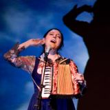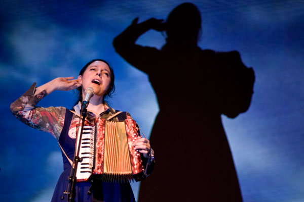 De Zwitserse vocaliste Erika Stucky speelt tijdens de proloog van de ZomerJazzFietsTour 2011. Foto © Julia Free.