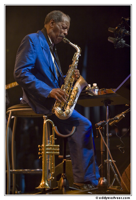 Na Scotts fantastische doorleefde optreden kwam de showcase rond Odean Pope wat gewoontjes over. James Carter stond uitgelaten te swingen en Eddie Henderson deed wat hij de laatste jaren al geregeld met de ‘retrobands’ The Leaders en The Cookers deed, lekker boppen. Pope is een geweldig energieke saxofonist met een machtig geluid en Jeff ‘Tain’ Watts zat achter de drums dus power verzekerd, maar onvergelijkbaar met de rijke emotionaliteit van Scotts muziek.