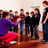 Sfeerimpressie repetitie Eric Vloeimans met Rotterdams Jongenskoor voor concert Horn Please! Foto © Jaap Reedijk.