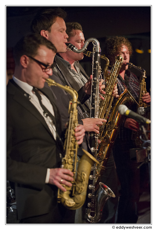 Saxofonist Joris Roelofs met Philip Catherine en Clemens van der Feen. Blazerssectie met het jonge talent Yoran Aarssen. Benjamin Herman met Clemens van der Feen en Hans van Oosterhout.