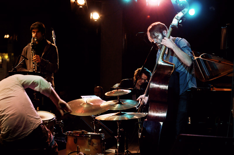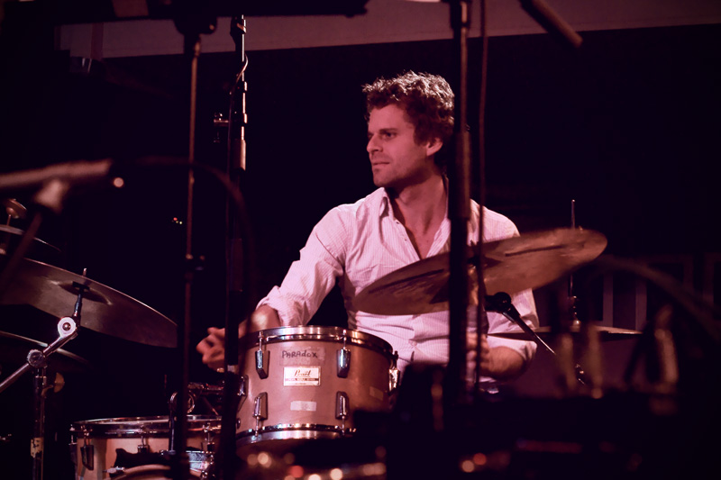 Pianist Wolfert Brederode met zijn buitenlandse kompanen Mats Eilertsen, Samuel Rohrer en Claudio Puntin in een vol Paradox in Tilburg.